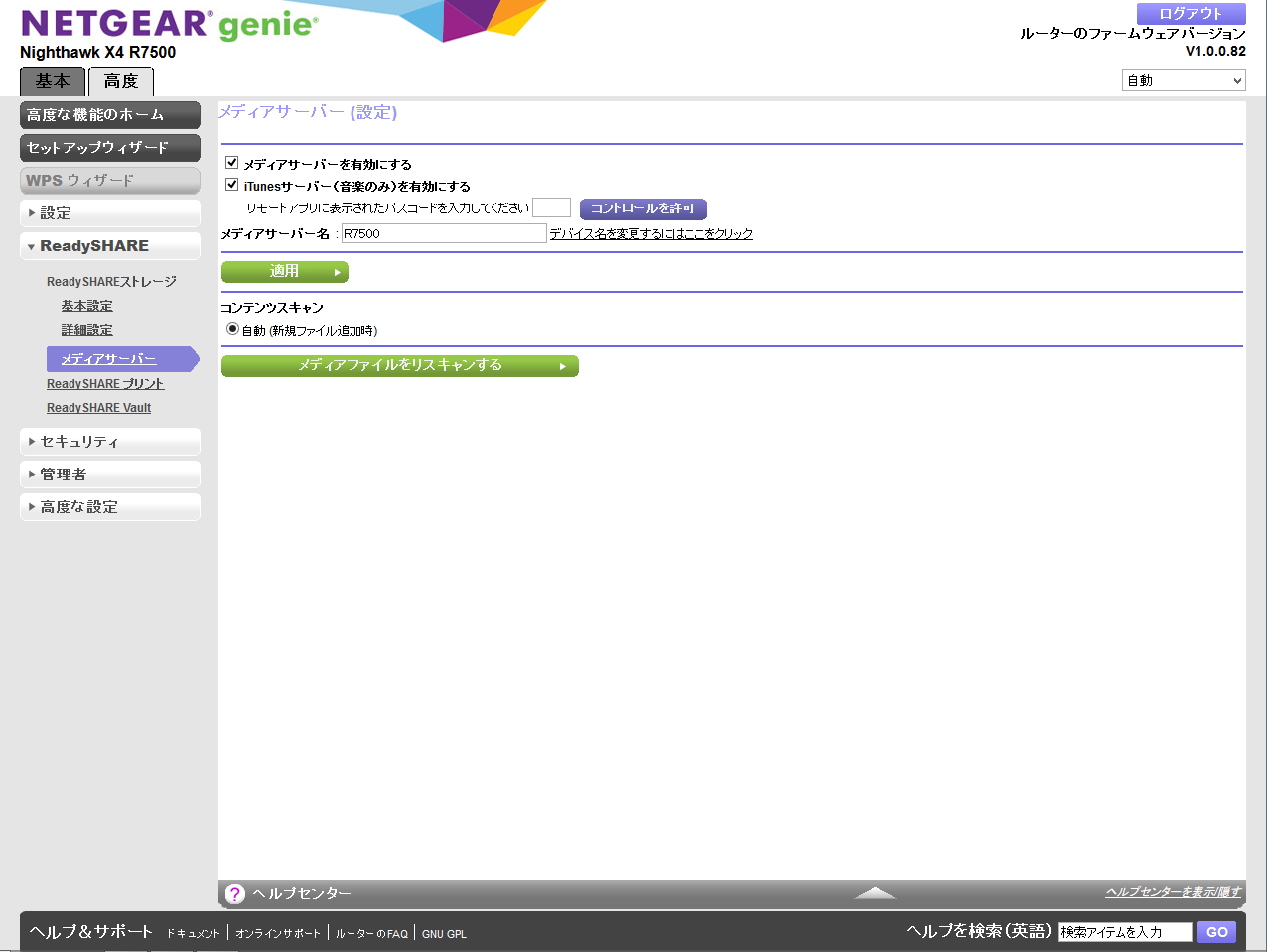 R7500が本機のメディアサーバです。