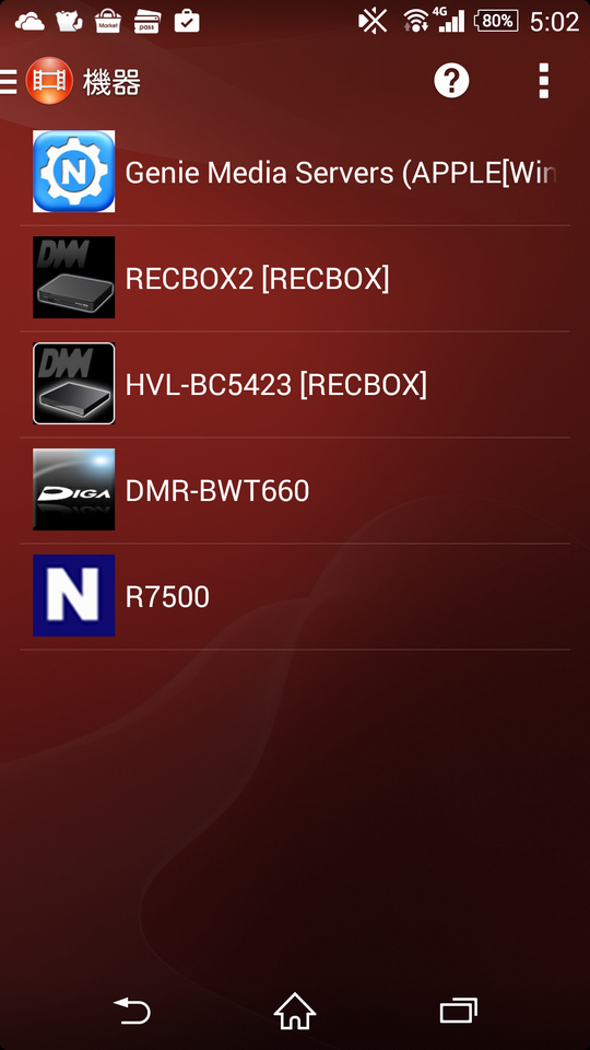 ※音楽を聴く場合はWalkmanアプリから同じように【機器】メニューからメディアサーバにアクセスしています。