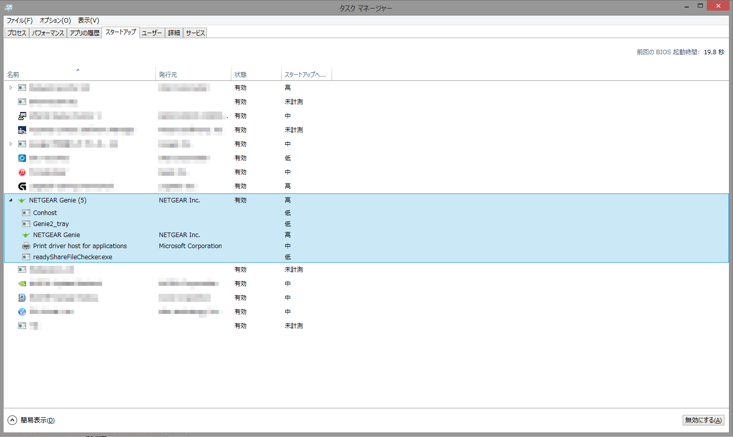 試しに、タスクトレイにある【NETGEAR genie】から終了してみると一覧から消えました。