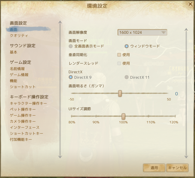ArcheAgeの環境設定の画面設定の項目には「画面」と「クオリティ」の2項目あります。
