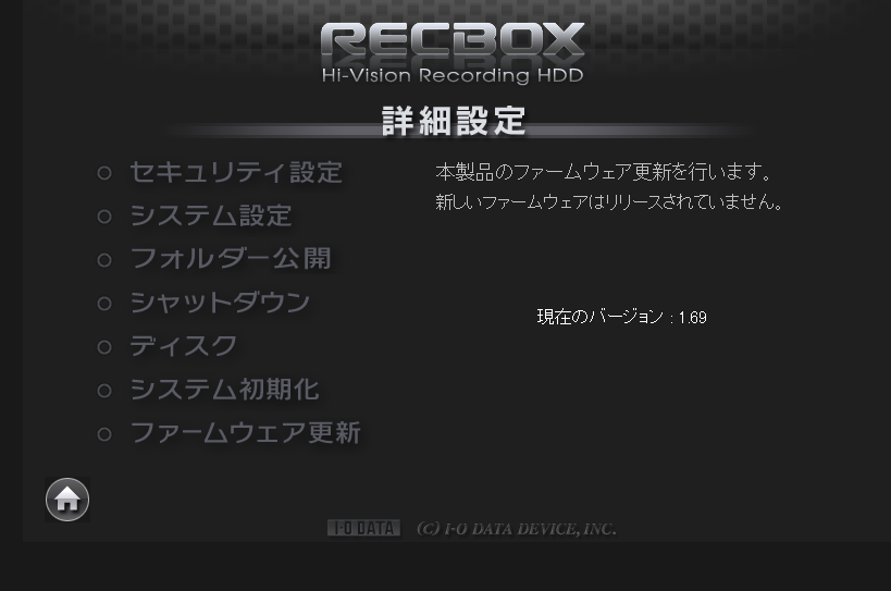 ※システムの初期化により、ファームウェアのバーションが1.65に戻ったため、最新バージョン1.69にバージョンアップします。