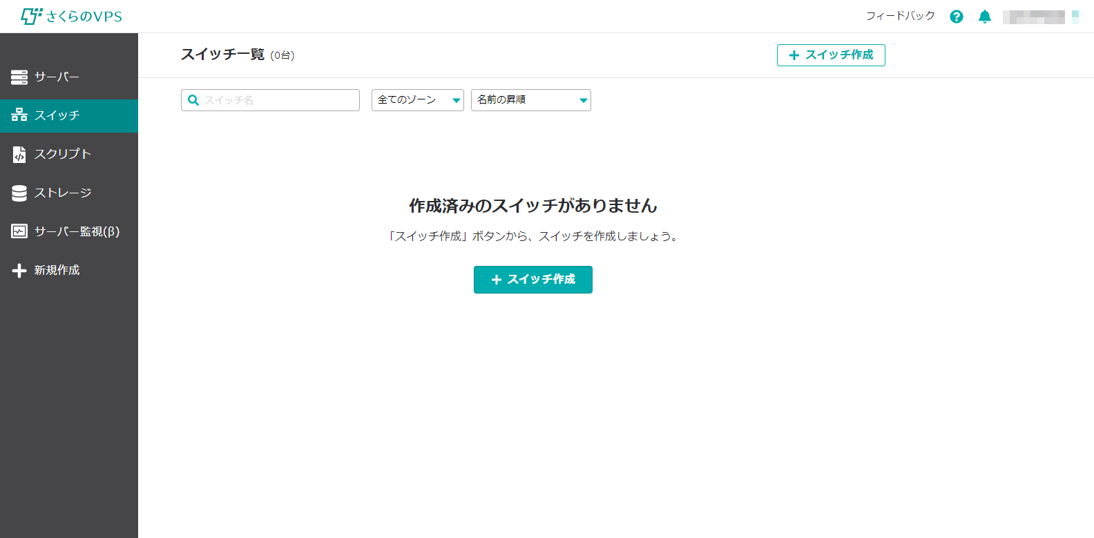 作成済みのスイッチがないので、 スイッチ作成ボタンを押してスイッチを作成します。