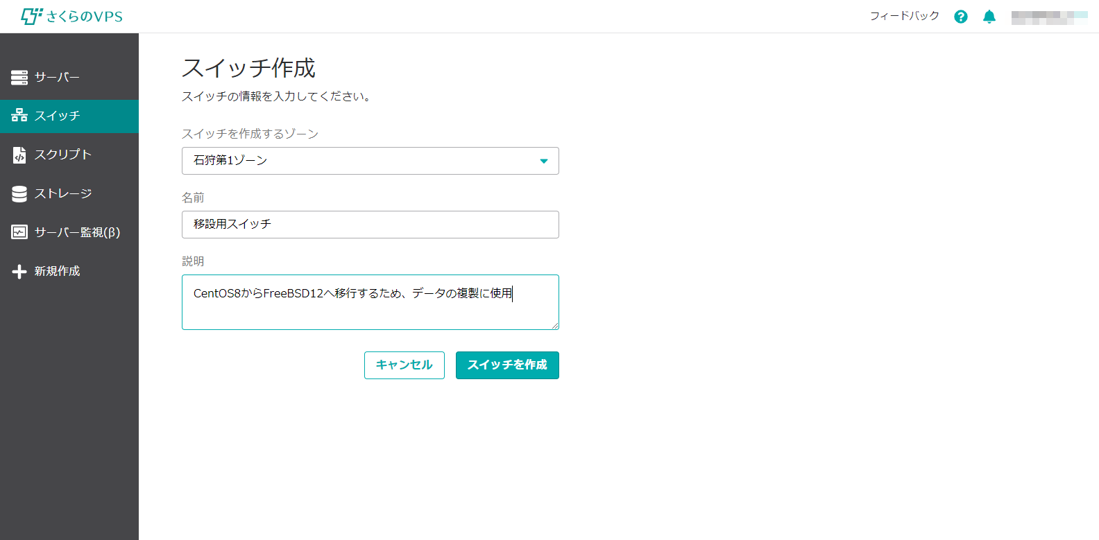 スイッチの作成とVPSの接続先設定の操作はさくらのコントロールパネルから行います。