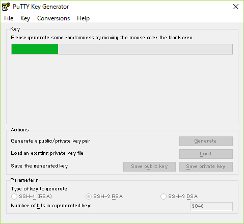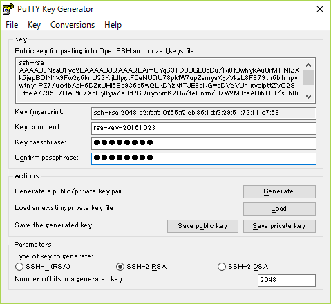 鍵の作成には、PuTTYに付属のPuTTY Key Generatorを使用しました。