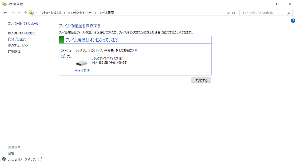 Windows10のバックアップ -ファイル履歴-