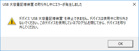 何らかのプログラムが利用した状態のようで「ハードウェアの安全に取り外してメディアを安全に取り外す」が正常に終了しません。