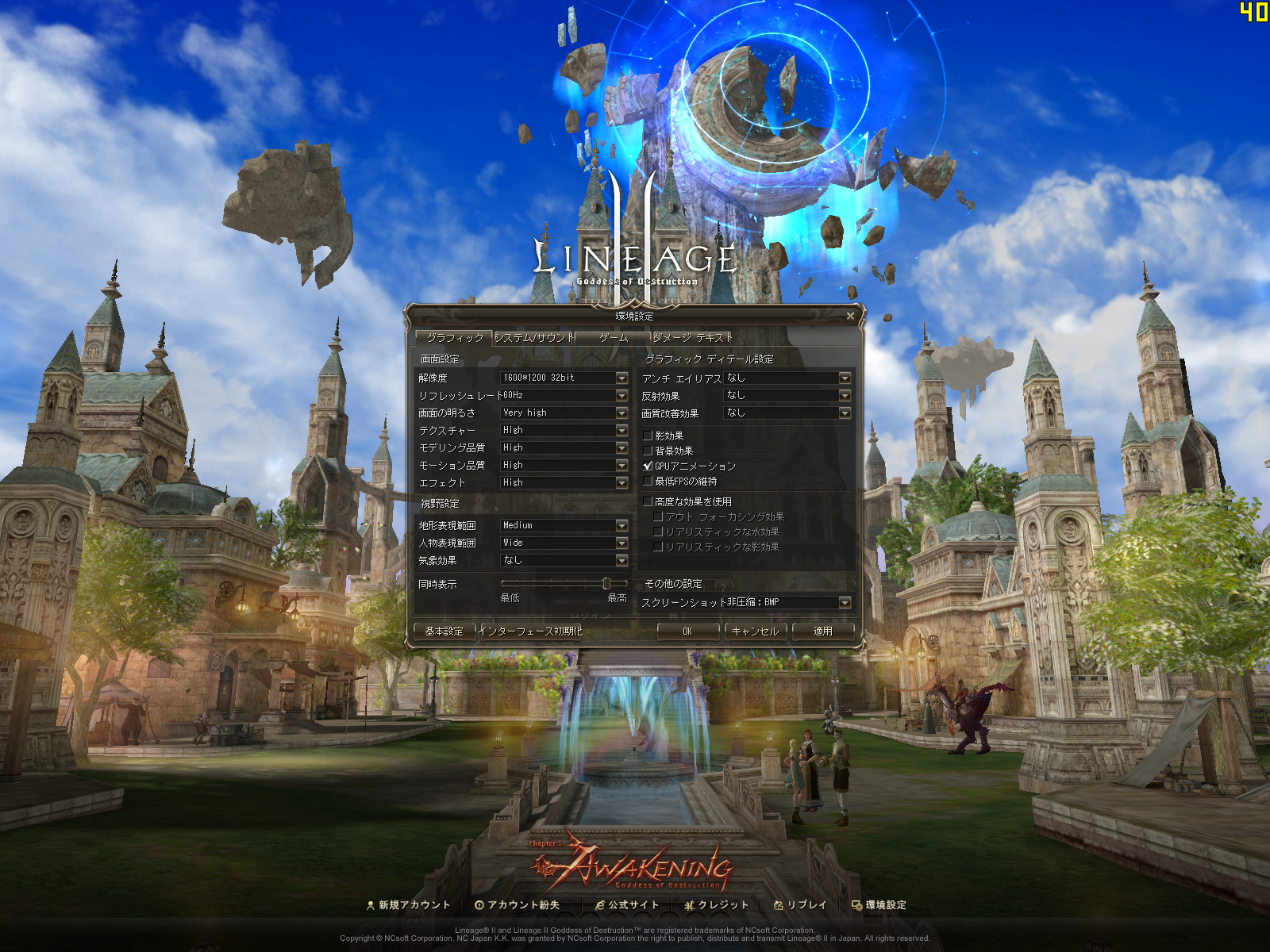 (1)リネージュ2では環境設定で「画面の明るさ」を「Very high」に設定