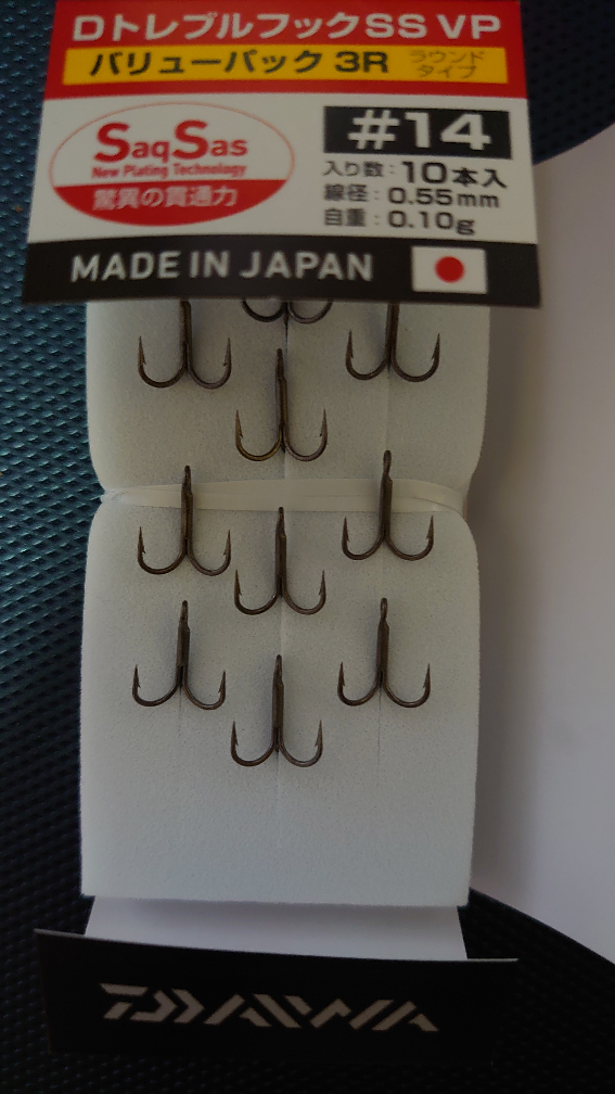| トレブルフック | 記載なし | サクサス#14と同サイズ、Dトレブルフック SS VP 3R #14に交換 |
