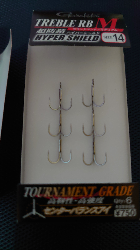 | トレブルフック | 記載なし | ラウンドタイプでサクサス#14よりワンサイズ大(グレイシーと同サイズ)さらに太軸 Dトレブルフック SS VP 3R #14に交換 |