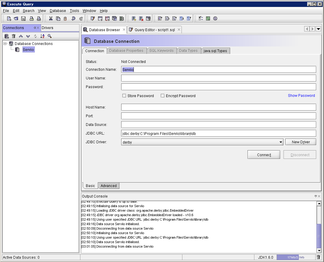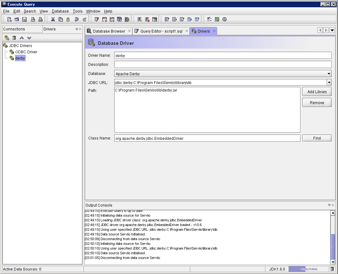 Execute QueryでApache Derbyのデータベースに接続する方法について記載します。