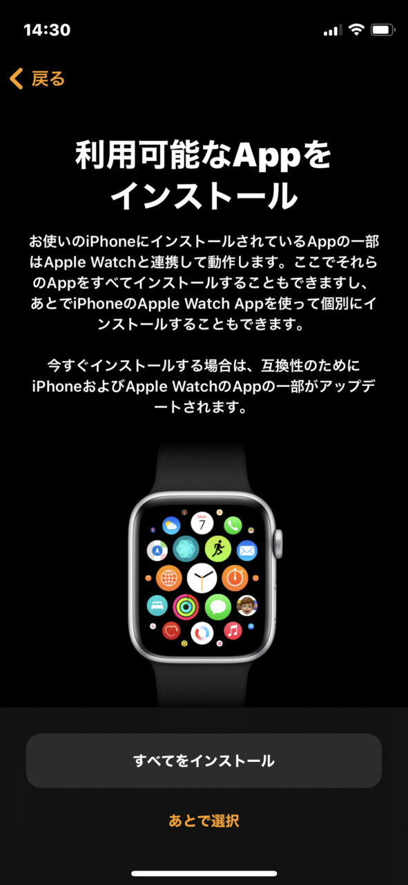 iPhoneにインストールされたアプリからApple Watchに対応しているアプリがセットアップ時にインストールされます。使用しないアプリは非表示にすると利用可能なAPPに分類されます。
