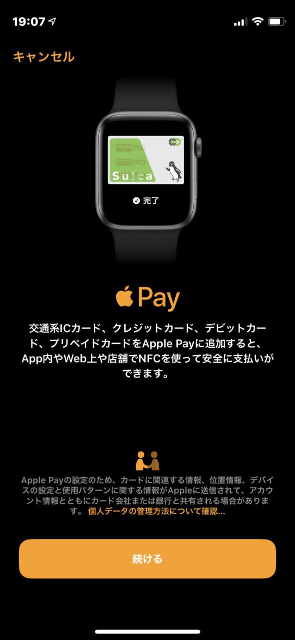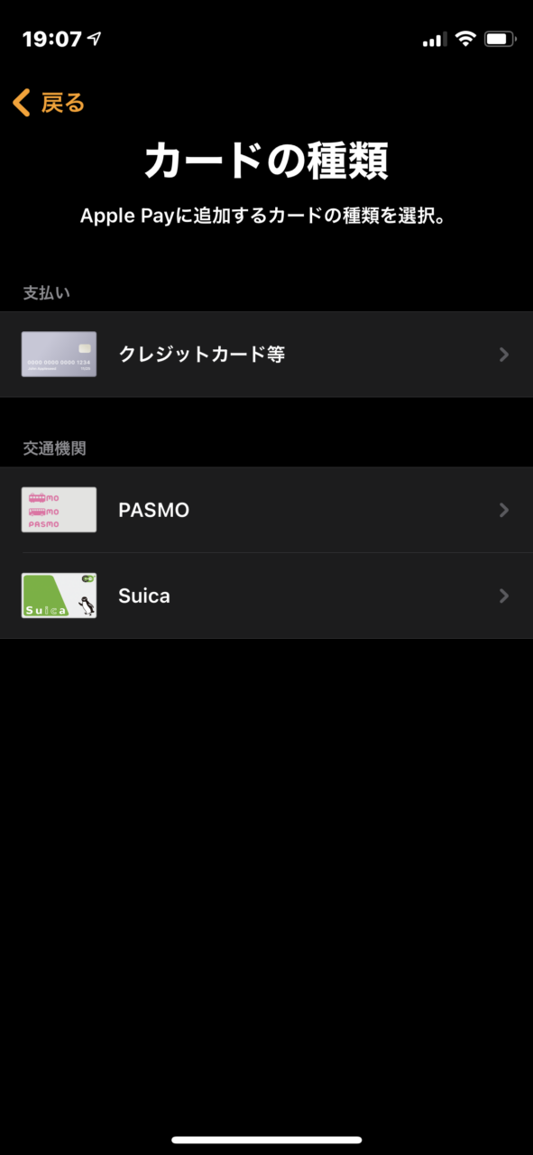 また、Apple Watchでチャージするのであれば、支払い用カードもいっしょに追加が必要です。
