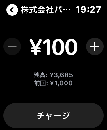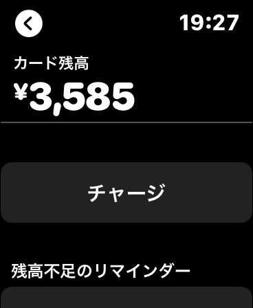 この状態ではApple Watchからチャージはできませんので、モバイルPASMOアプリがインストールされたiPhoneからチャージを行います。