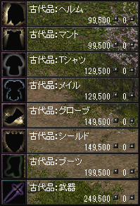 古代品でどれくらいレアがでるのかをアデナで古代品:メイルを購入して試してみましたが、40個すべてマジックチェーンメイルでした。