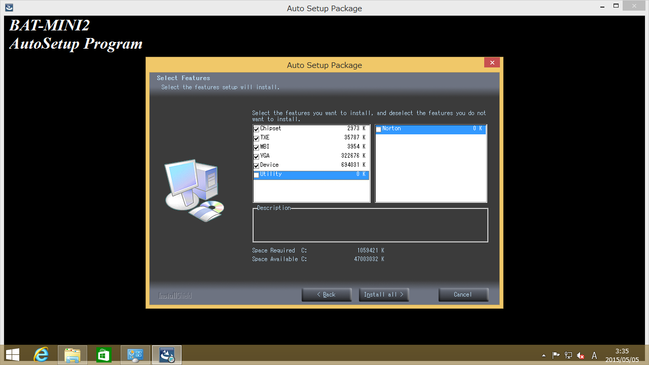 Utilityを選択するとNortonがインストールされてしまうので、Utilityのチェックを外し、その他すべてをインストールしました。