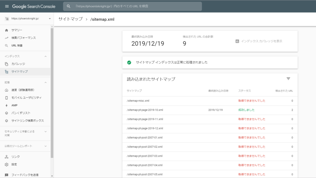 Google Search Consoleで読み込んだサイトマップ